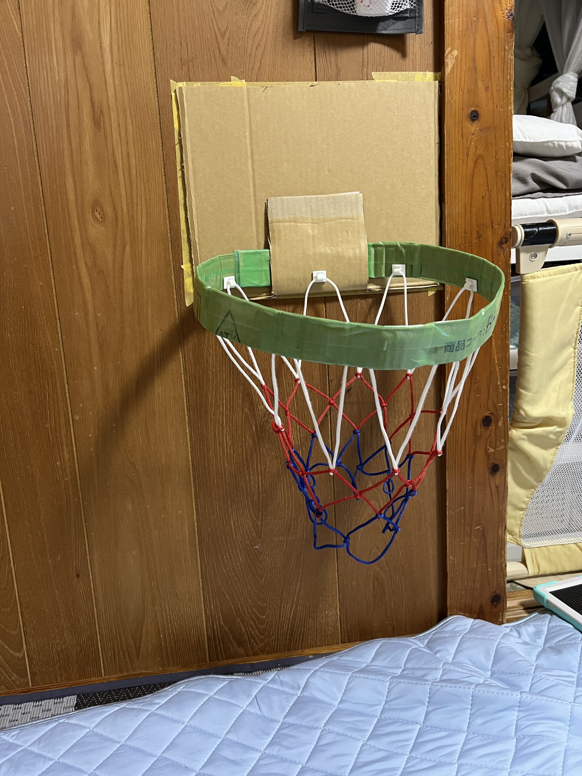 自宅に帰り今度は本命のDIY、子供用バスケットリング段ボールで作りました。