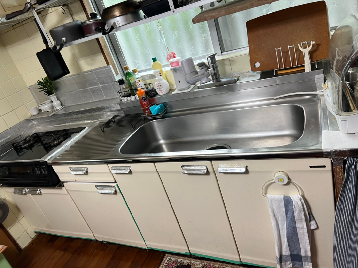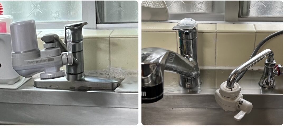 キッチンの水道蛇口付近の水漏れと使い勝手が悪く、(蛇口2個ほしい、シャワーヘッド脱着式がいい)との要望があり本体丸々取り換えしました。